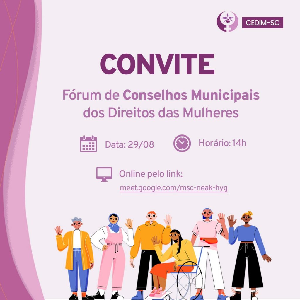 Fórum de Conselhos Municipais dos Direitos das Mulheres 24 de agosto de 2023 Data: 29/08/2023 Horário: 14h Acesse o link online: GOOGLE MEET « Roda de Conversa sobre o Agosto Lilás: como podemos contribuir enquanto Municípios na desconstrução das Violências Contra as Mulheres! ARTIGO – Violência contra a Mulher é da nossa conta: possibilidades de atuação no sistema de controle externo brasileiro – Cibelly Farias »