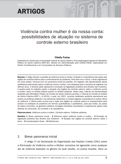 Nesse contexto, o artigo da Procuradora de Contas Cibelly Farias discute a questão da violência contra a mulher no Brasil e a importância das ações dos órgãos de controle externo (Ministério Público de Contas e Tribunais de Contas) para o enfrentamento do problema.