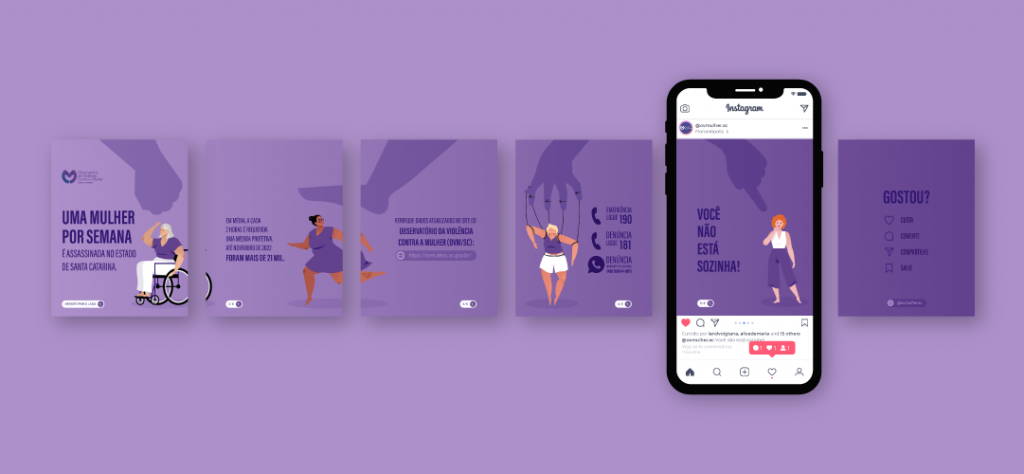 Peças publicitárias de combate à violência de gênero foram desenvolvidas com o apoio do OVM/SC para um projeto de conclusão de curso universitário. A iniciativa chamou atenção do meio acadêmico para a contribuição do Design a uma sociedade mais segura para mulheres e meninas.